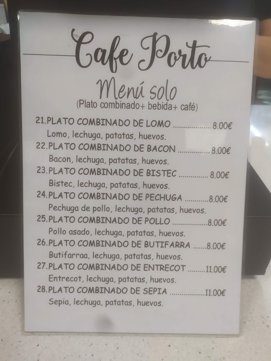 One of the highlights of Porto Cafe is their renowned plato combinado, a well-curated meal that includes a refreshing café and a soft drink, all for an incredibly reasonable price of just 8 euros. Guests are often treated to a complimentary side of olives and bread, which add a perfect touch to the dining experience.